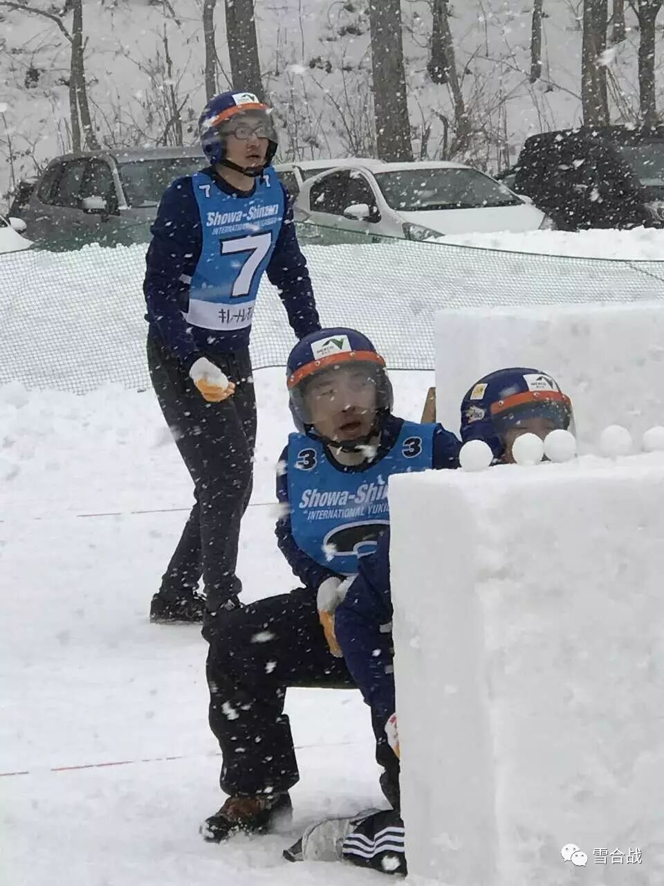 赛程靠后的选手们,在场边做起了热身练习。不管是男选手、女选手、甚至是小孩儿都是一色的棒球练习!!!雪合战运动与投掷性项目有很大的共同性。在比赛中日本选手包括小孩子投掷的雪球都是又低又平,力道十足。